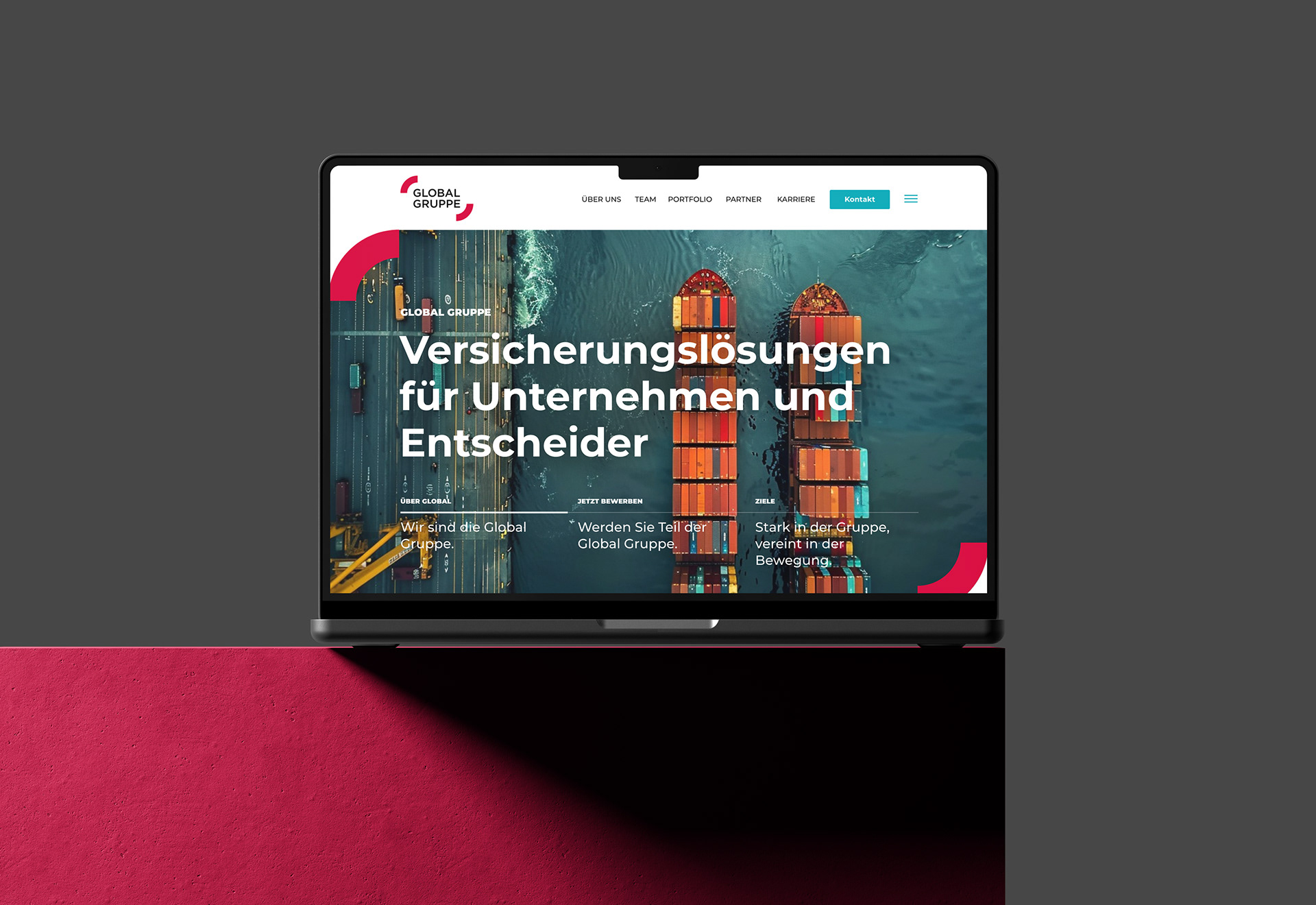 Das Versicherungsunternehmen Global Gruppe suchte eine Corporate Identity, die Modernität ausstrahlt und es klar von Mitbewerbern absetzt. Wir entwickelten ein prägnantes Logo, ergänzt durch moderne Farbverläufe und ein flexibles Layoutsystem. Eine starke Bildsprache stellt die Menschen ins Zentrum und vermittelt Nähe und Vertrauen. So entsteht ein Erscheinungsbild, das Seriosität mit zeitgemäßer Markenästhetik verbindet.